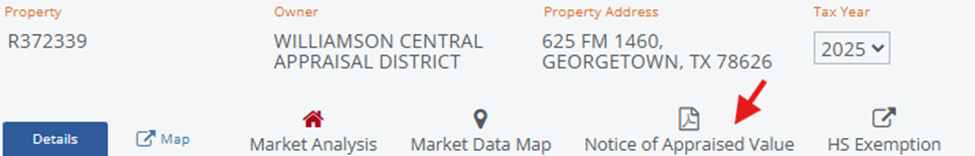 accessible between April when Notice of Appraised Value (NOAV) letters are sent out and the protest deadline filing date, May 15th.